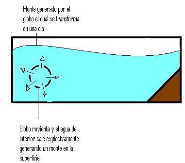 La forma en que lo simularemos será con un globo que podamos hacer explotar provocando una perturbación que mueva el agua a gran velocidad.