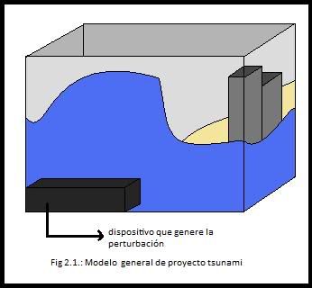 Esto mismo es lo que queremos simular, teniendo una “fuente” con agua, queremos provocar una perturbación en la base de la fuente tal que pueda simular a escala un tsunami. Un diseño general sería algo como la figura 2.1.